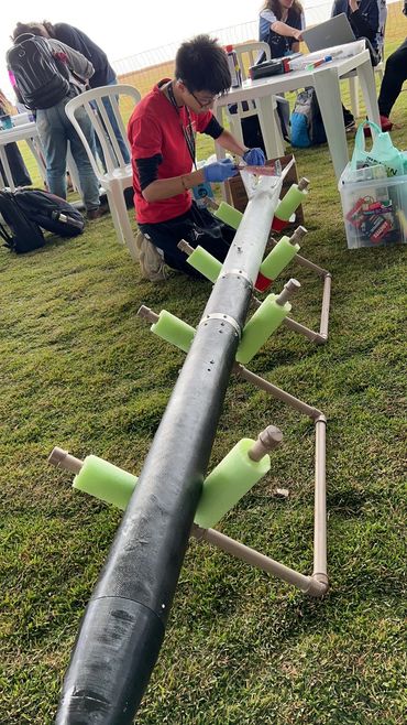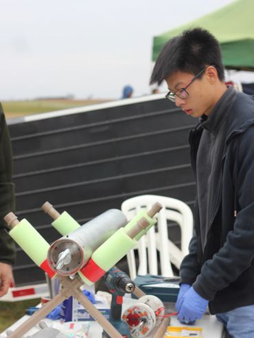 As a 15 year old, I designed, built, and launched a high-power solid-propellant rocket using a Student Researched and Developed (SRAD) motor with KNSB propellant. The mission was to reach an apogee of 3,000 m using an M1848 class motor. I built the structure with fiberglass lamination and epoxy, with 3D printing. Only the parachutes are Commercial-Off-The-Shelf (COTS). However, a recovery system failure to deploy the parachutes resulted in ballistic descent and loss of the rocket.